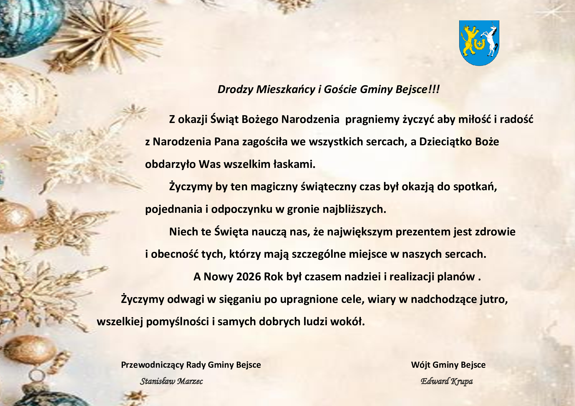 Zgodnie z art.20 ust. 1 i 3 ustawy z dnia 8 marca 1990 r. o samorządzie gminnym (Dz.U. 2025 r. poz. 1153 ze zm.) oraz § 37 ust. 4 Statutu Gminy Bejsce zwołuję na dzień 19 grudnia 2025r. o godz. 10.00 w sali konferencyjnej świetlicy wiejskiej w Bejscach Nadzwyczajną Sesję Rady Gminy Bejsce. Proponowany porządek […]